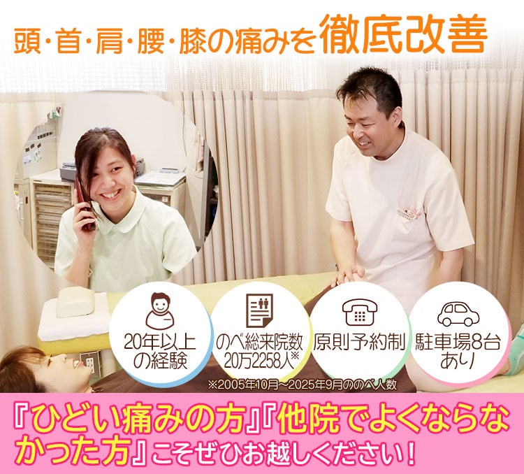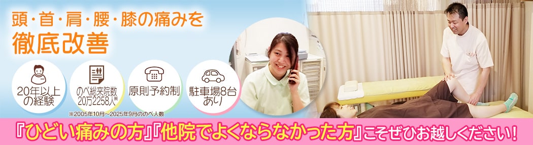 総来院数のべ20万2258人(2005年10月~2025年9月)と、これまで多数の方の施術を行ってきた経験があります。