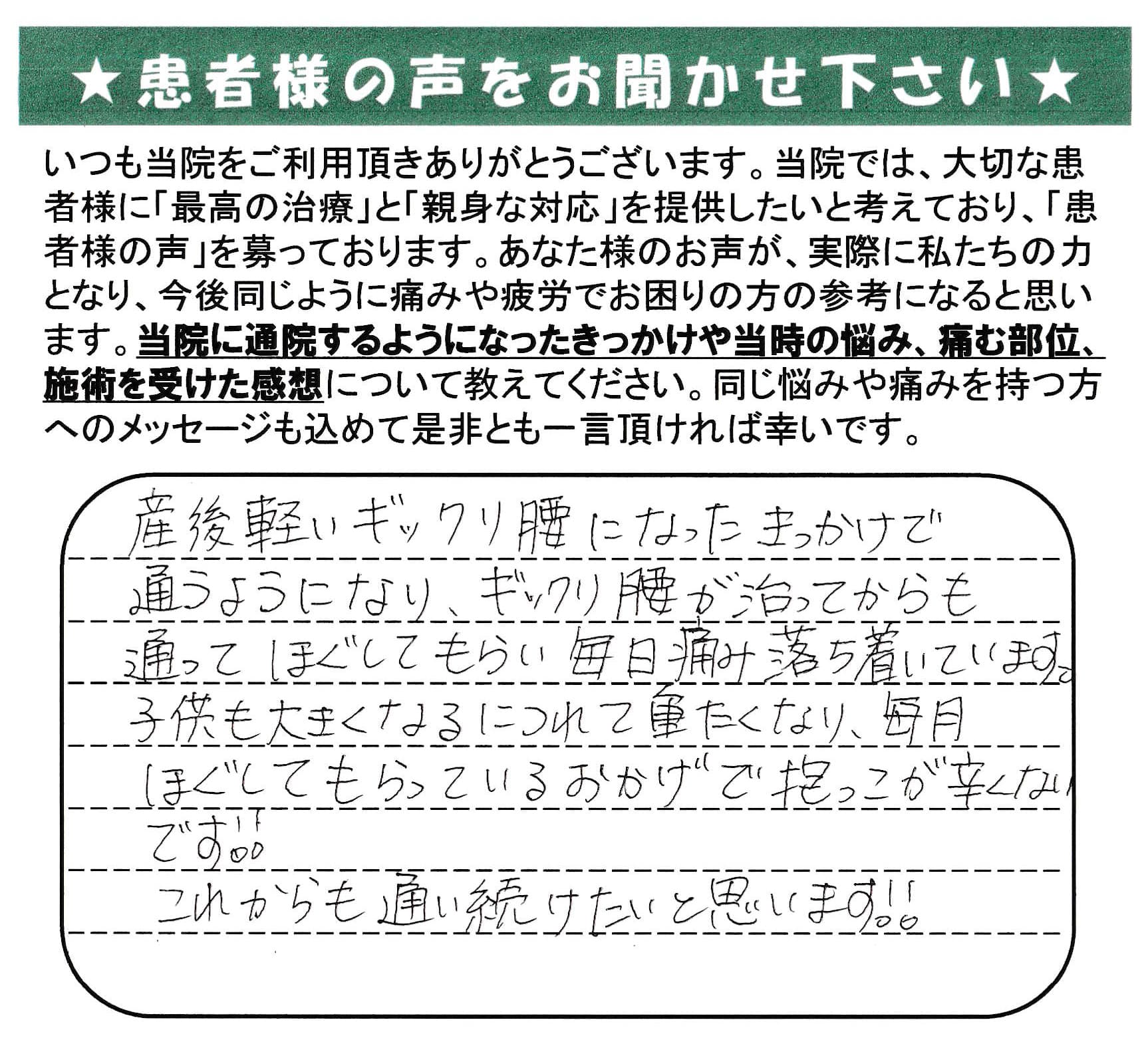 ぎっくり腰に関するお客様の声