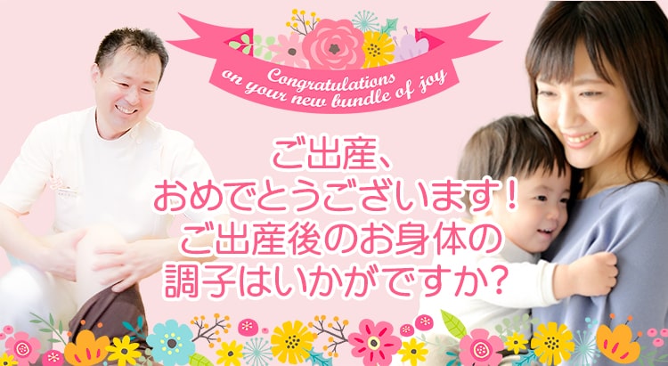 ただ出産したあとでお腹の大きさが変化したことによって『骨盤関節が元の正しい姿勢や動作を忘れてしまったり、できなくなっていることで、それが骨盤や腰のあたり痛みを出してくることがあります。』また慣れない授乳の姿勢や赤ちゃんの抱っこが続くことで、骨盤に左右不均衡な力が日常的に加わり、腰痛をはじめ身体のコリや張り腕や手の腱鞘炎や脚のだるさ・むくみ、膝の痛みを訴える方が多いことも現実です。